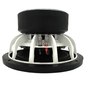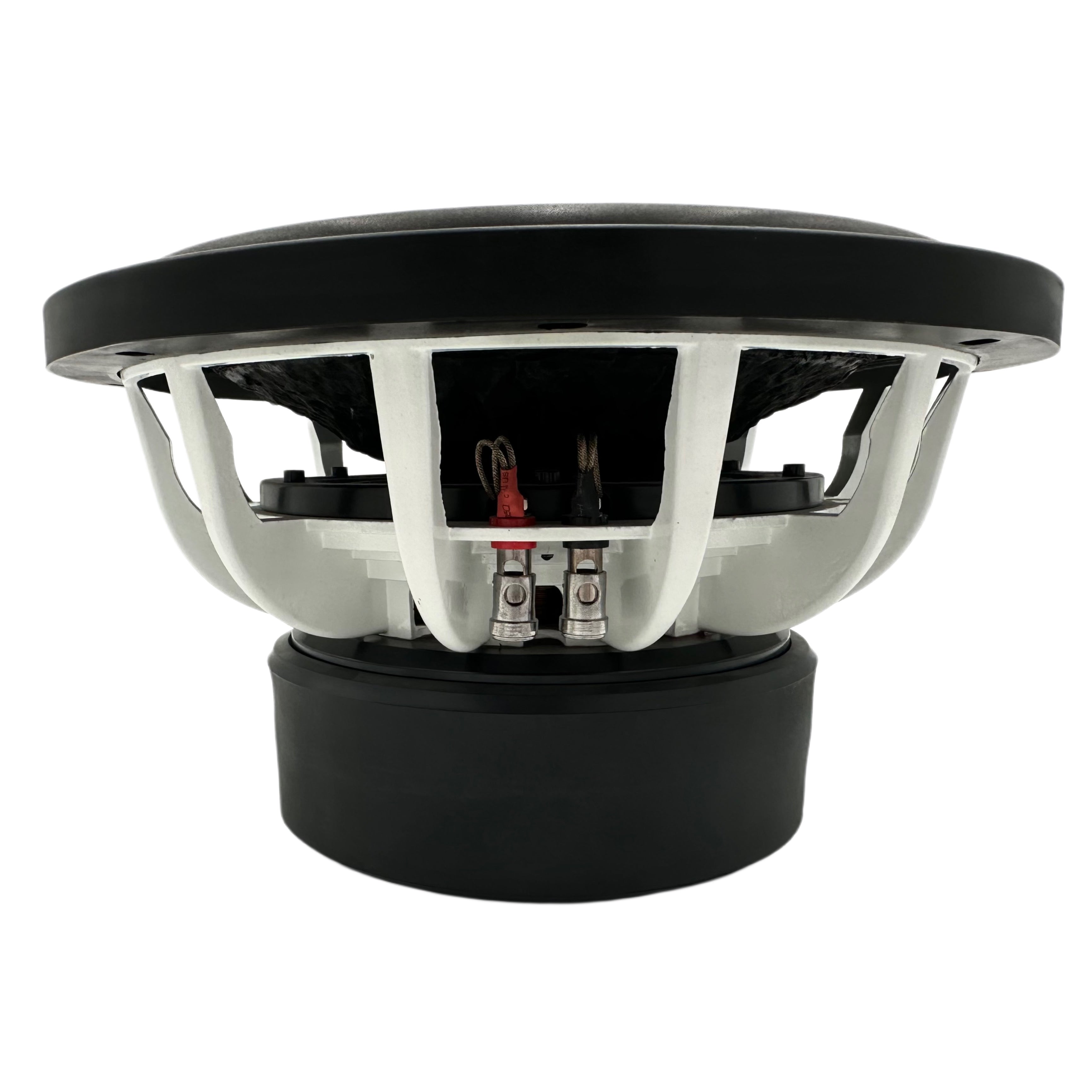 If you’re into gut wrenching bass during the week and competitions on the weekend then the LAZER PHASE THREE Subwoofer Series is just right for you. White powder coated Strong cast aluminum frame, CNC large vent motor structure, Free Flow Cooling System, double stacked Y-35 ferrite 100 oz magnets, 3″ BASV voice coil former, Made in USA AICCAW wire, double bolt in spiders, non pressed raw pulp paper cone, laminated high roll foam surround double stitched to cone, 3D LAZER hard dust cap. 3,000/1,500 RMS power handling capacity.