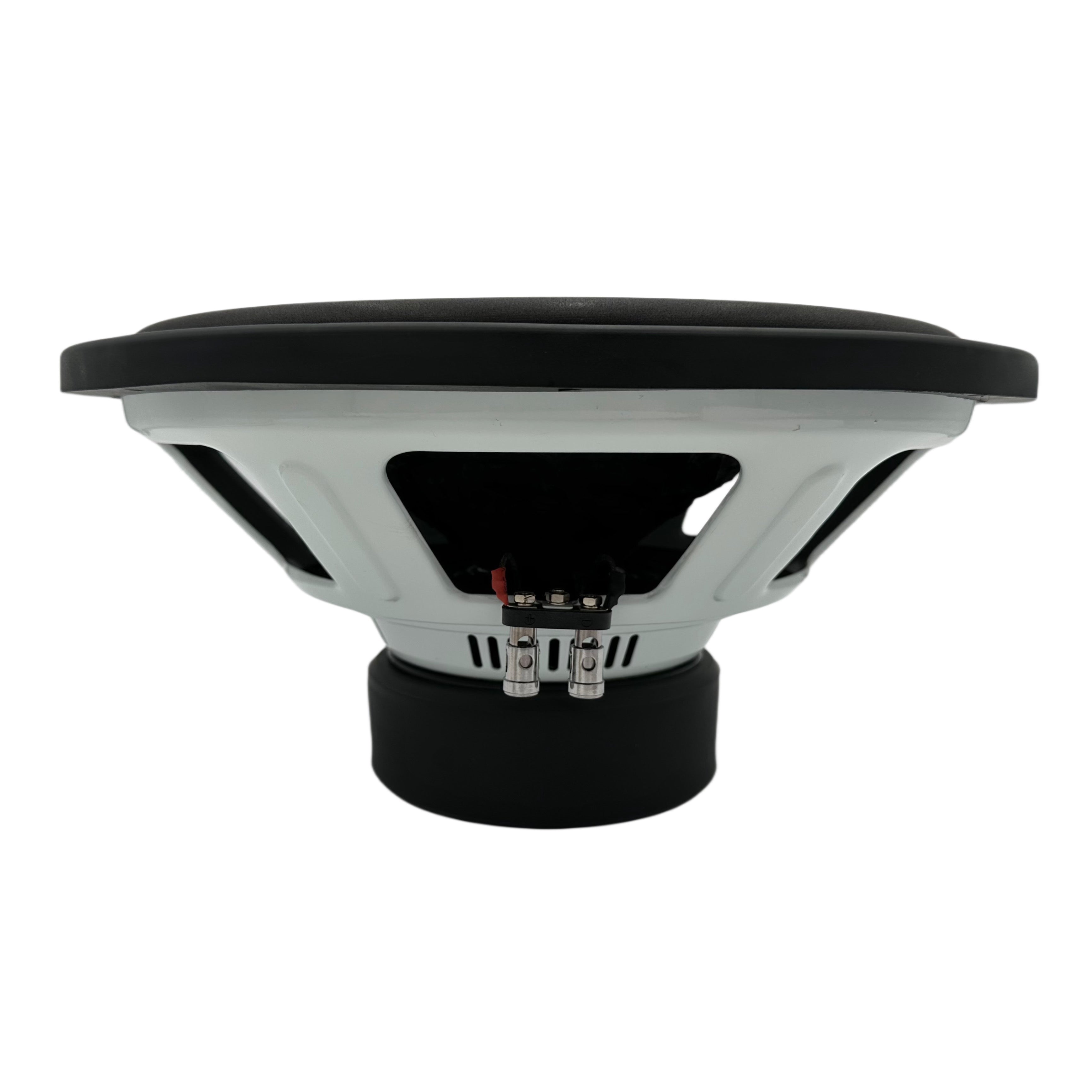 Delivering tight/low bass on a budget that everyone can afford, and not giving up all the space in your ride. White powder coated heavy stamped steel basket, 2.5″ BASV voice coil former, Japanese wire, dual 4 ohm configuration, vented motor structure, Free Flow Cooling