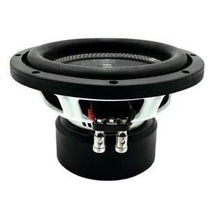 Delivering tight/low bass on a budget that everyone can afford, and not giving up all the space in your ride. White powder coated heavy stamped steel basket, 2.5″ BASV voice coil former, Japanese wire, single 4 ohm configuration, vented motor structure, Free Flow Cooling