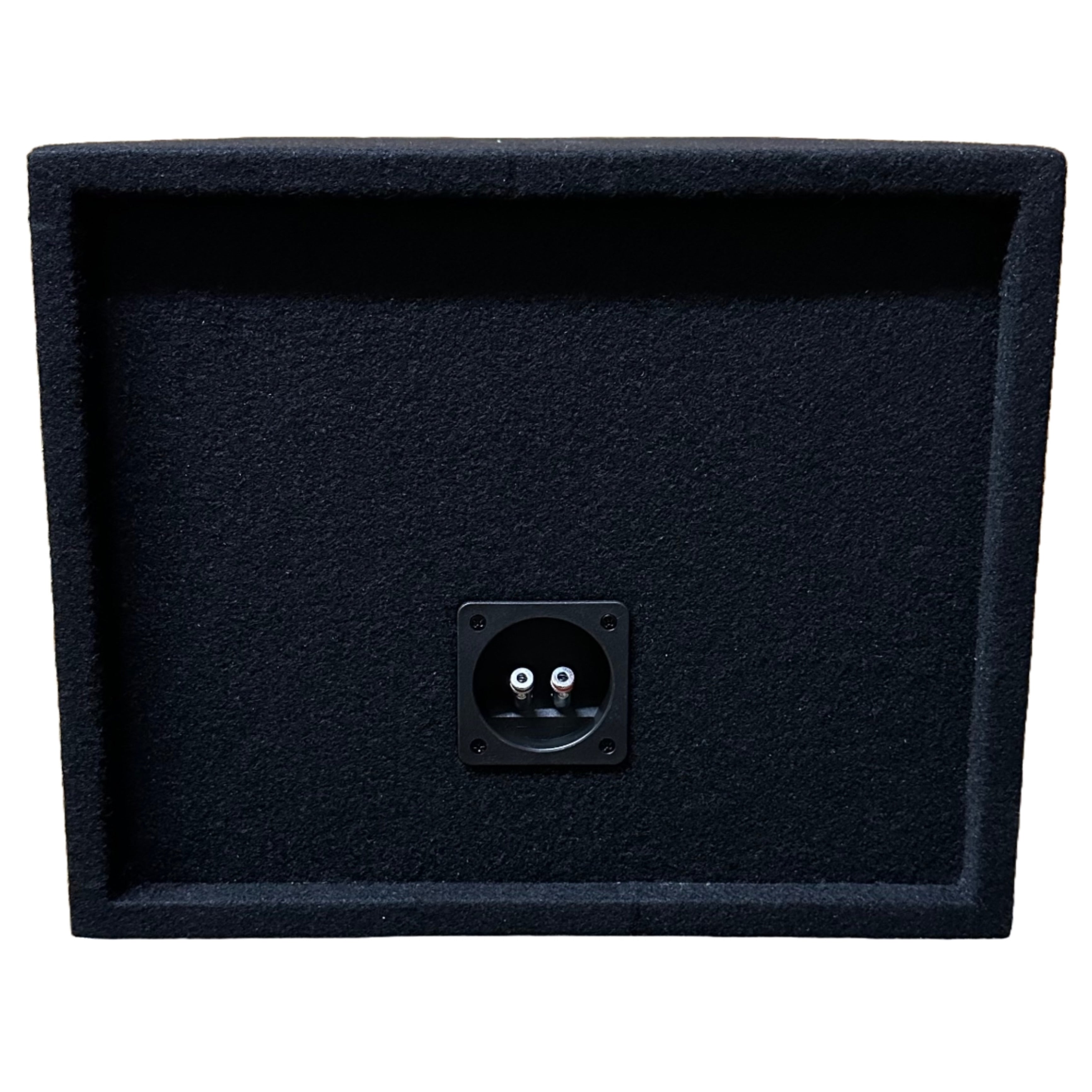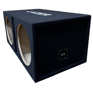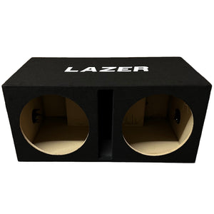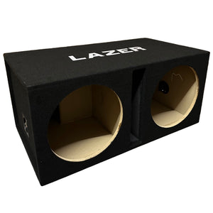 Introducing LAZER's new compact box series, designed specifically for the customer who wants to run lower-powered subwoofers. The compact box series just as its name implies, is as small as possible and still allows low tuning. Construction begins with 5/8" MDF material and is topped off with a black felt carpet and has a white stitched LAZER logo with Nickel-plated metal push terminals. Box tuning is 35Hz and recommended to run subwoofers with wattage up to 600 RMS per sub.