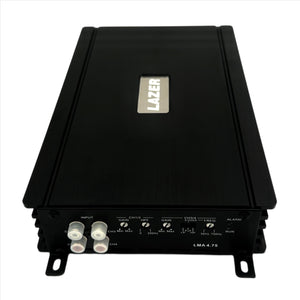 All LAZER MINI AMPS start with an FR4 double sided PCB, a mix of surface mount and through hole design is used to make the boards as small as possible, and still deliver the maximum amount of clean power. All of the main components are layed out in the most logical positions, just as most all other brands, the magic happens in the layout. The traces in the board are laid out and simulated over and over till to deliver the max power without increasing the distortion levels. LMA series amps are some of the most powerful amps of their size and the RMS ratings are modest, not exaggerated like some out there.
