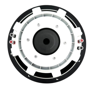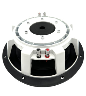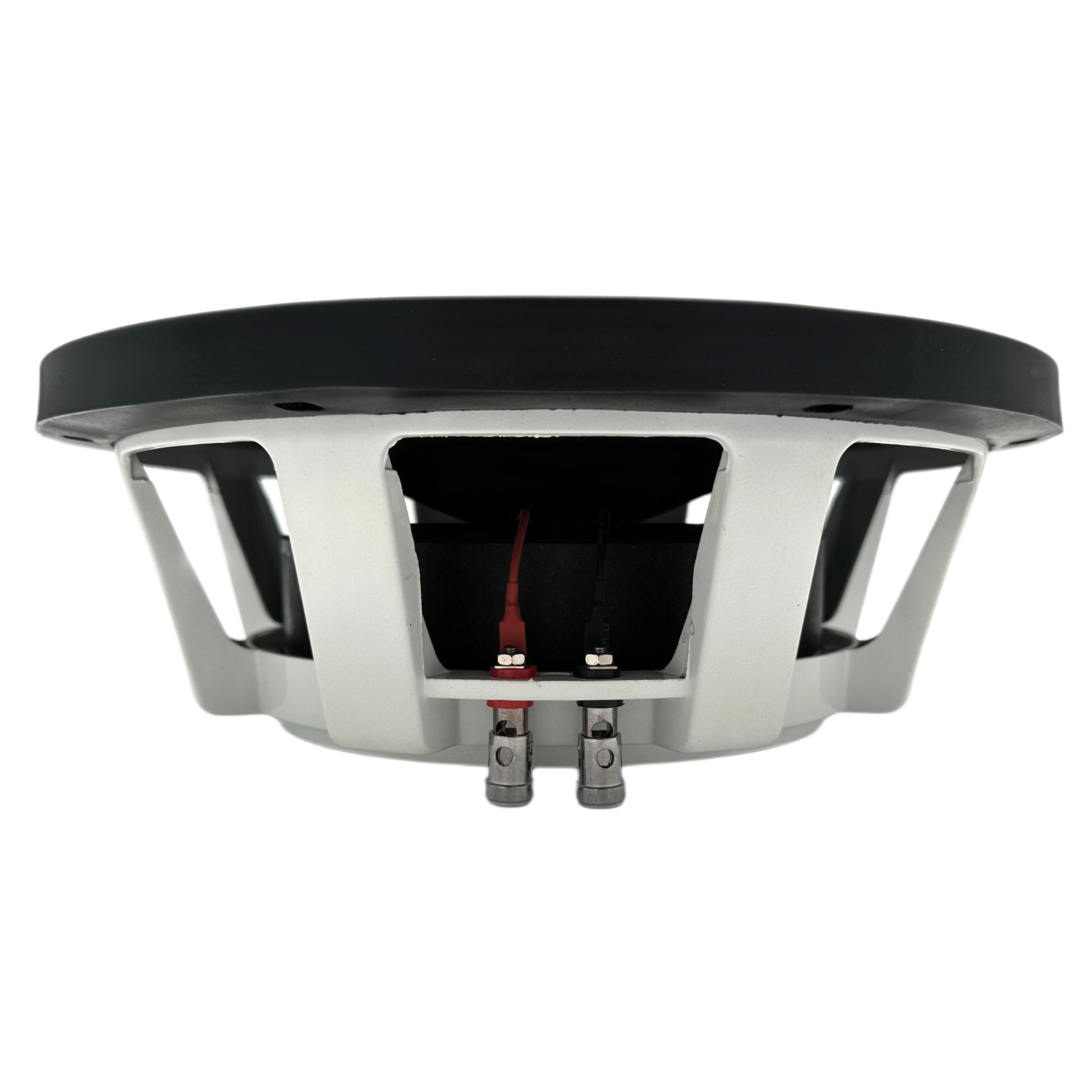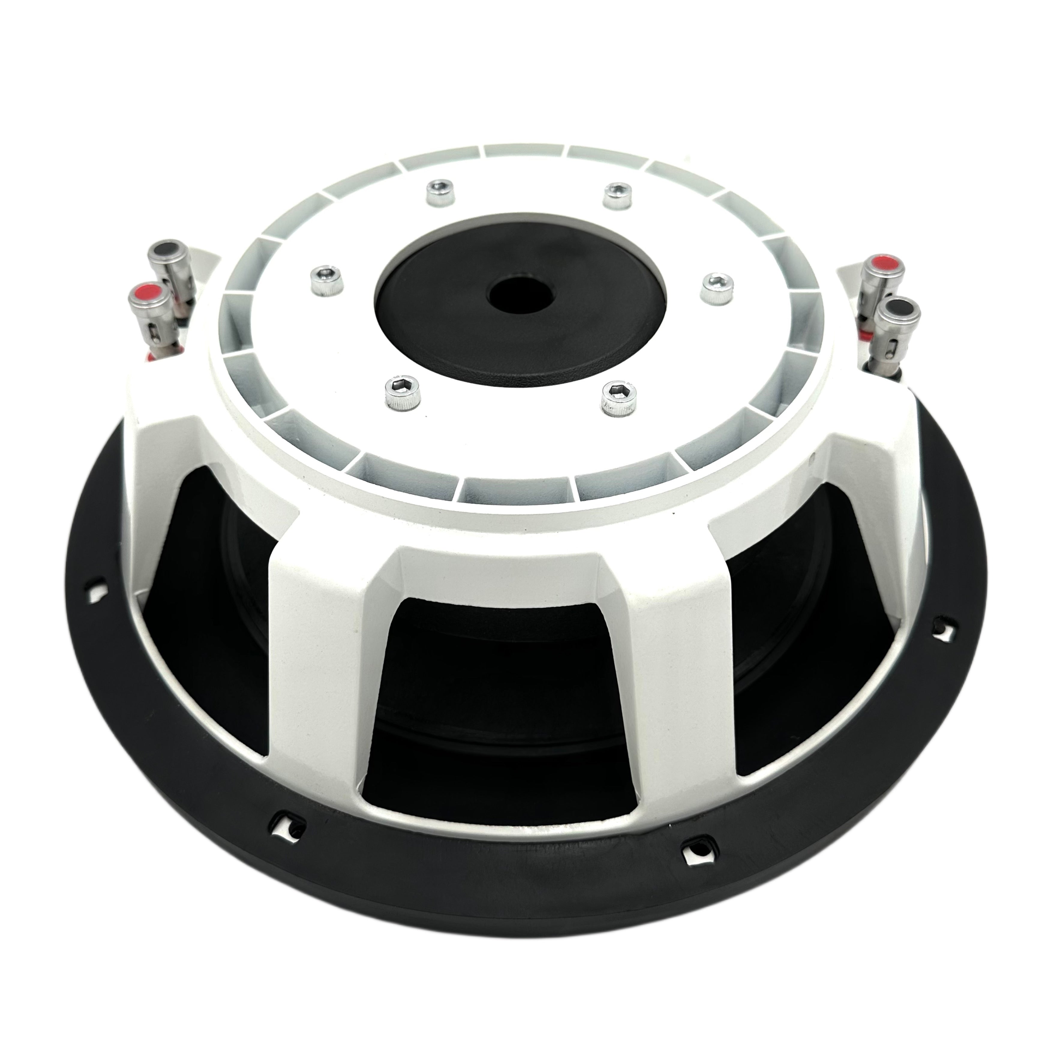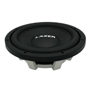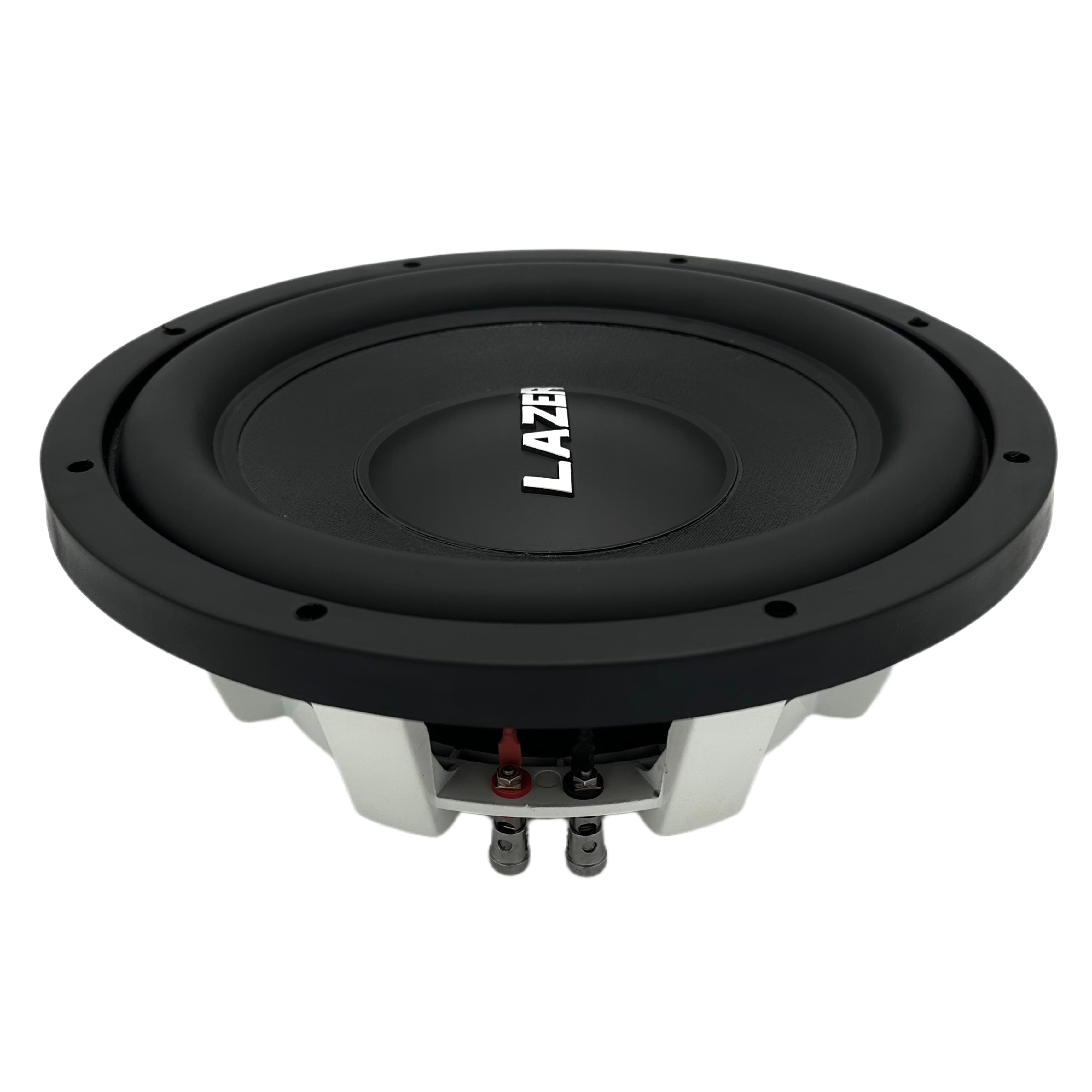 LAZER has the perfect solution for producing tight low bass, where space is limited or almost non exhistant. White powder coated strong cast aluminum low profile basket, vented motor structure, Y-30 ferrite 50 oz magnet, proprietary custom spider, 2″ kapton voice coil former, SV wire, dual 4 ohm configuration, non pressed pulp cone, butyl rubber fat roll surround double stitched to the cone, push terminal connectors, 3D LAZER hard dust cap.